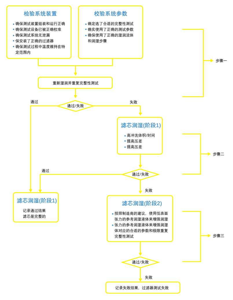 - 使用低表面張力的參考流體進(jìn)行完整性測試,以確定濾芯可潤濕性變化與濾芯完整性無關(guān)